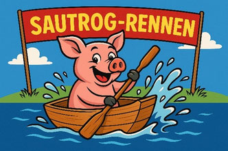 Das Rennen ist erst beendet, wenn mit dem Paddel auf den Eimer im Zielbereich geschlagen wird Sieger ist der der als erstes im Ziel ist oder sich am längsten mit dem Sautrog über Wasser hält,